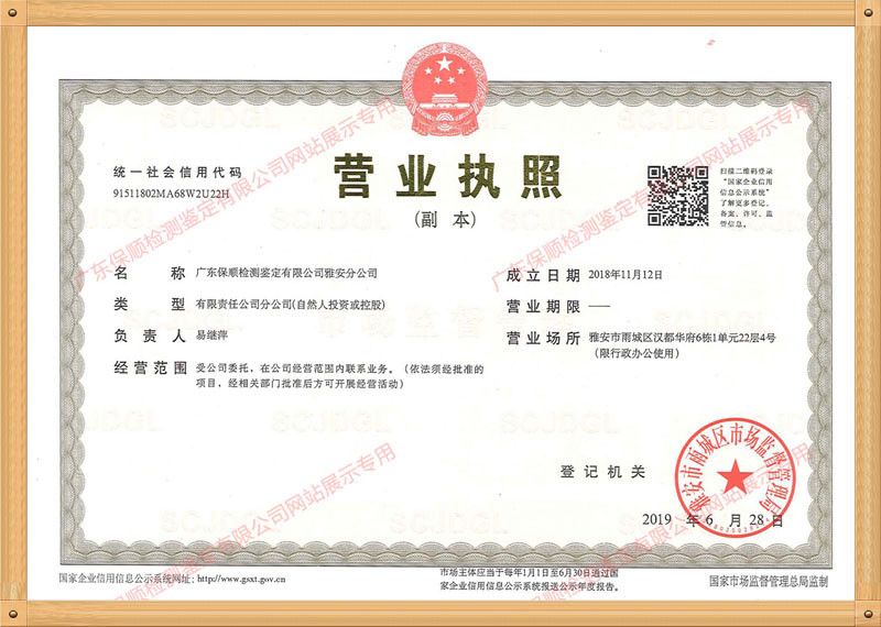 - 總公司:廣東保順檢測鑒定有限公司(下轄分公司70+家)