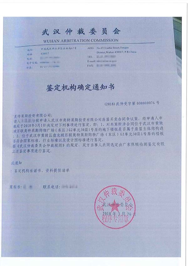 由武漢市仲裁委員會審理的申請人王**與被申請人武漢市****投資發展有限公司房屋買賣合同糾紛一案,因案情需要,廣東保順檢測鑒定有限公司對位于武漢市黃陂區盤龍城百聯奧特萊斯購物廣場的地下樓板是否屬于房屋主體結構及樓板厚度是否符合設計圖標準進行檢測鑒定。