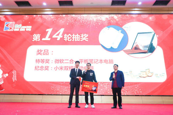 年會全程穿插十四輪抽獎環(huán)節(jié),筆記本電腦、手機 、單反相機等總值超過10萬元的三百多件獎品輪番抽!