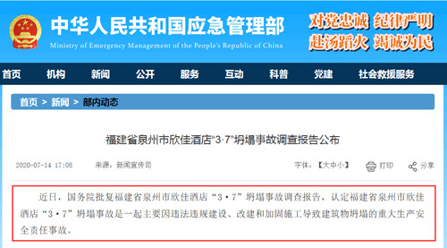 2020年3月7日19時(shí)14分,位于福建省泉州市鯉城區(qū)的欣佳酒店所在建筑物發(fā)生坍塌事故,造成29人死亡、42人受傷,直接經(jīng)濟(jì)損失5794萬(wàn)元。事發(fā)時(shí),該酒店為泉州市鯉城區(qū)新冠肺炎疫情防控外來(lái)人員集中隔離健康觀察點(diǎn)。