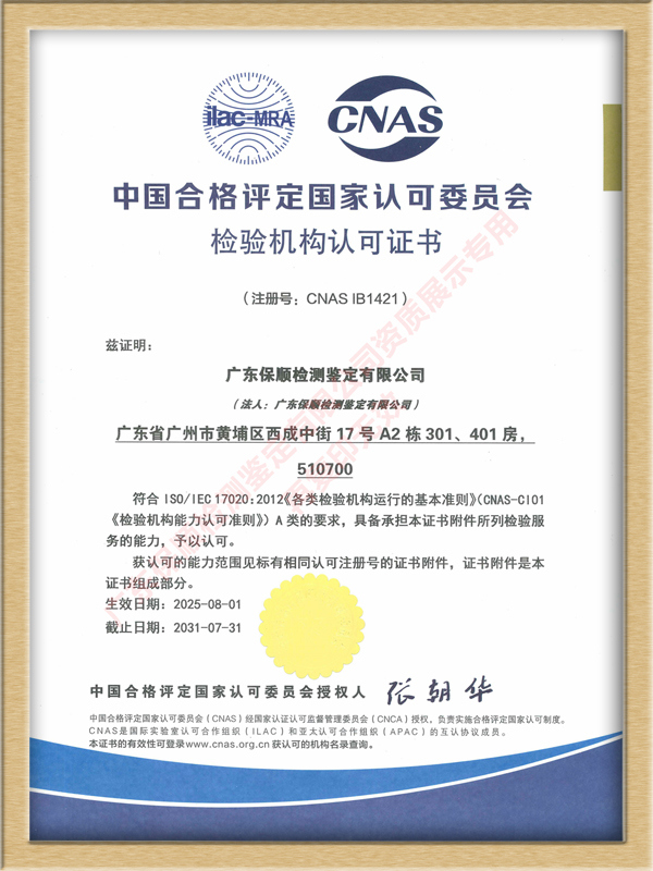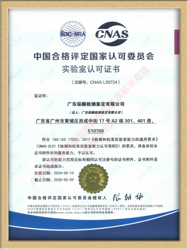 中國合格評定國家認可委員會作為由國家市場監(jiān)督管理總局批準(zhǔn)設(shè)立并授權(quán)的國家認可機構(gòu),CNAS認可過程嚴格參照國際標(biāo)準(zhǔn) ISO/IEC 17011 執(zhí)行。雙項國家級認證的取得,意味著廣東保順檢測鑒定有限公司在檢測鑒定技術(shù)能力、質(zhì)量管理體系、人員專業(yè)素養(yǎng)以及設(shè)施設(shè)備等多方面,均達到了國內(nèi)乃至國際認可的高水平。