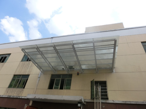為了解該構(gòu)筑物現(xiàn)時的安全狀況,受浙江諸暨市莎耐特襪業(yè)有限公司的委托,我公司派員對浙江省諸暨市大唐鎮(zhèn)商城北路333號莎耐特襪業(yè)有限公司半成品倉庫大門玻璃雨棚進(jìn)行房屋安全鑒定。